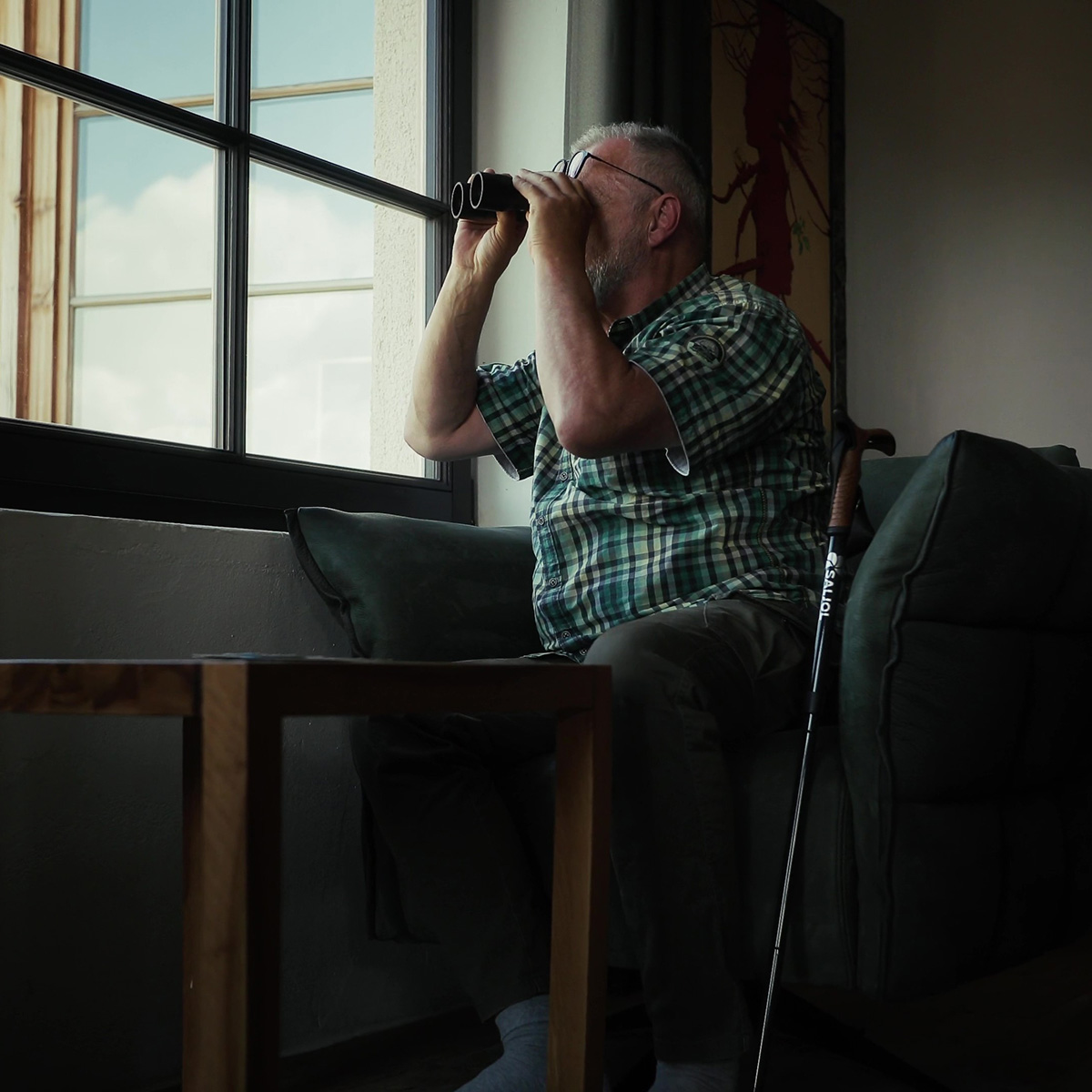 Werner ist zunächst skeptisch. Ein Rollator? Für ihn? Seiner Frau zuliebe probiert er das „komische Ding“ aus. Doch, was ist das? Der Rollator ist leicht. Lässt sich einfach steuern. Hat angenehme Griffe. Eine Tasche für Fernglas und Kamera. Und dann noch die Farbe – wie sein Lieblingswald!