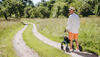 "Ich stolpere aufgrund einer Fußhebeschwäche häufig und bin vor allem auf abschüssigen Wegen recht unsicher. Gerade beim Bergabgehen hilft mir die Schleifbremse des Rollators besonders, weil ich damit die Gehgeschwindigkeit reduzieren kann und mich deutlich sicherer fühle. Wie eine Gangschaltung kann ich sie leicht mit meinem Fuß zu- und abschalten. Toll!"