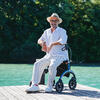 Durch sein geringes Gewicht lässt sich der Carbon Rollator mit einer Hand zusammenfalten, schieben, transportieren und bremsen.