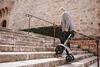 Für das Treppensteigen kann der Rollator zusammengeklappt werden. So können Sie sich mit einer Hand am Treppengeländer festhalten und mit der anderen Hand den Rollator nach oben tragen. Bei einem Einkaufsbummel durch die Altstadt trifft man doch immer mal auf Treppen und muss diese überwinden. Durch das geringe Gewicht des Saljol Carbon Rollators ist das kein Problem.