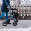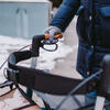 If you want to take a break while walking, set the locking levers by pushing the brake levers down. Now you can safely sit on your rollator and lean back into the back strap.