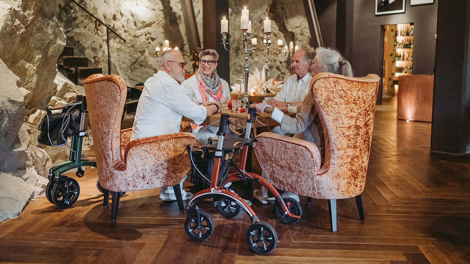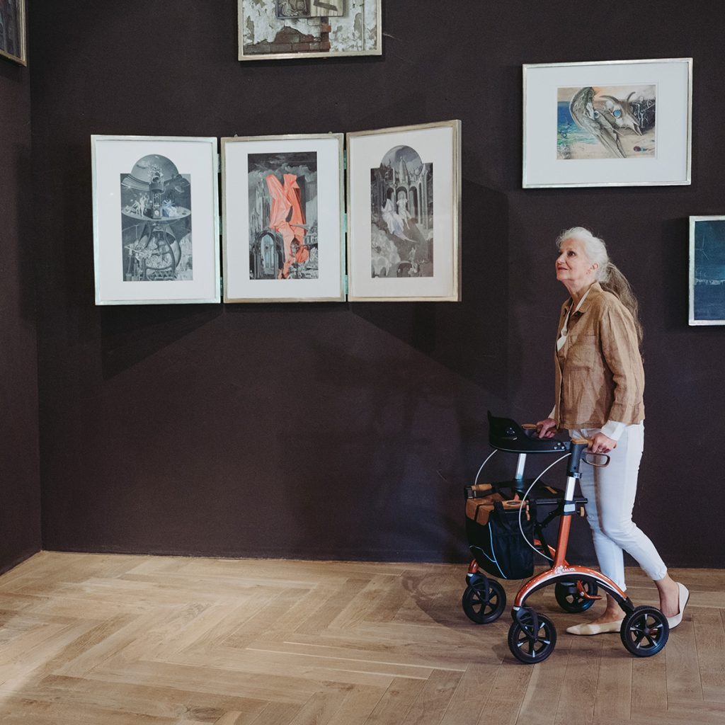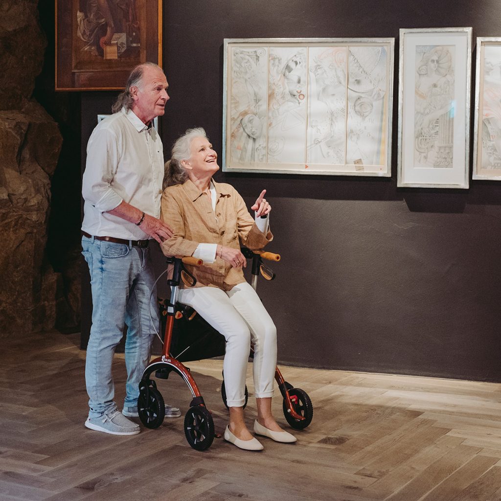 Most of all, they are thrilled that they can now move about freely. Their love for cultural activities has been fully rekindled. They visit a museum and spend a long time admiring the exhibits – Gina sits happily and contentedly on the rollator’s seat net. And there’s even enough energy left for a dinner with friends that evening …